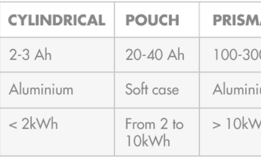 Zylindrische, Pouch- und Prismatische Zellen sind die am vielfachst hergestellten Lithiumzellenformate.