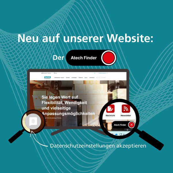Wichtig: Damit der ATECH Finder für Sie sichtbar ist bitten wir Sie, die Datenschutz-Einstellungen links unten auf unserer Website zu akzeptieren. Einmal akzeptiert, können Sie von nun an den vollen Funktionsumfang nutzen.